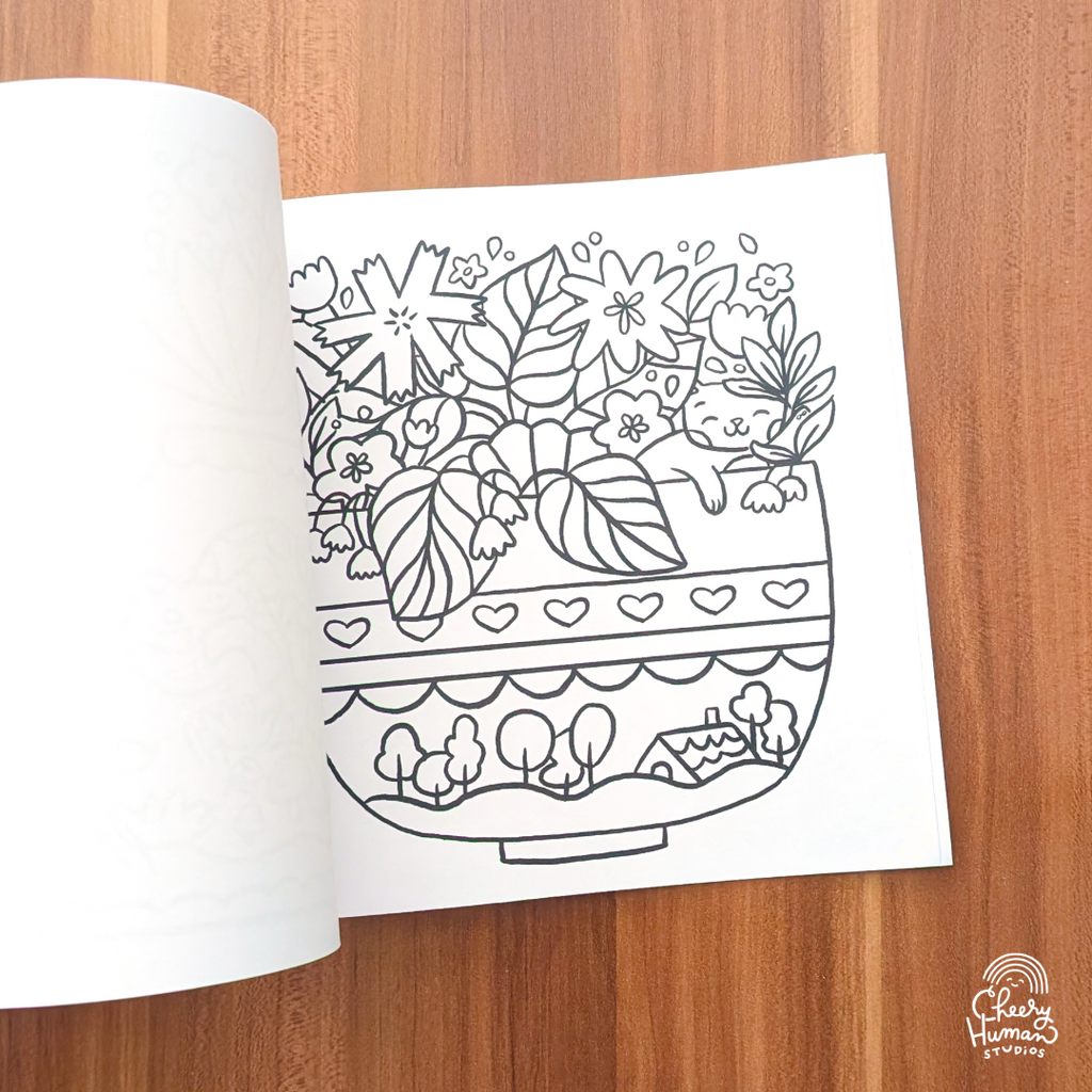 Say hello to my first self-published coloring book! The "Cozy Animals & Plants" coloring book features a selection of 18 hand-drawn re-imaginings of illustrated pieces with adorable animals, plants, florals, and foliage from my Tiny Worlds collection.