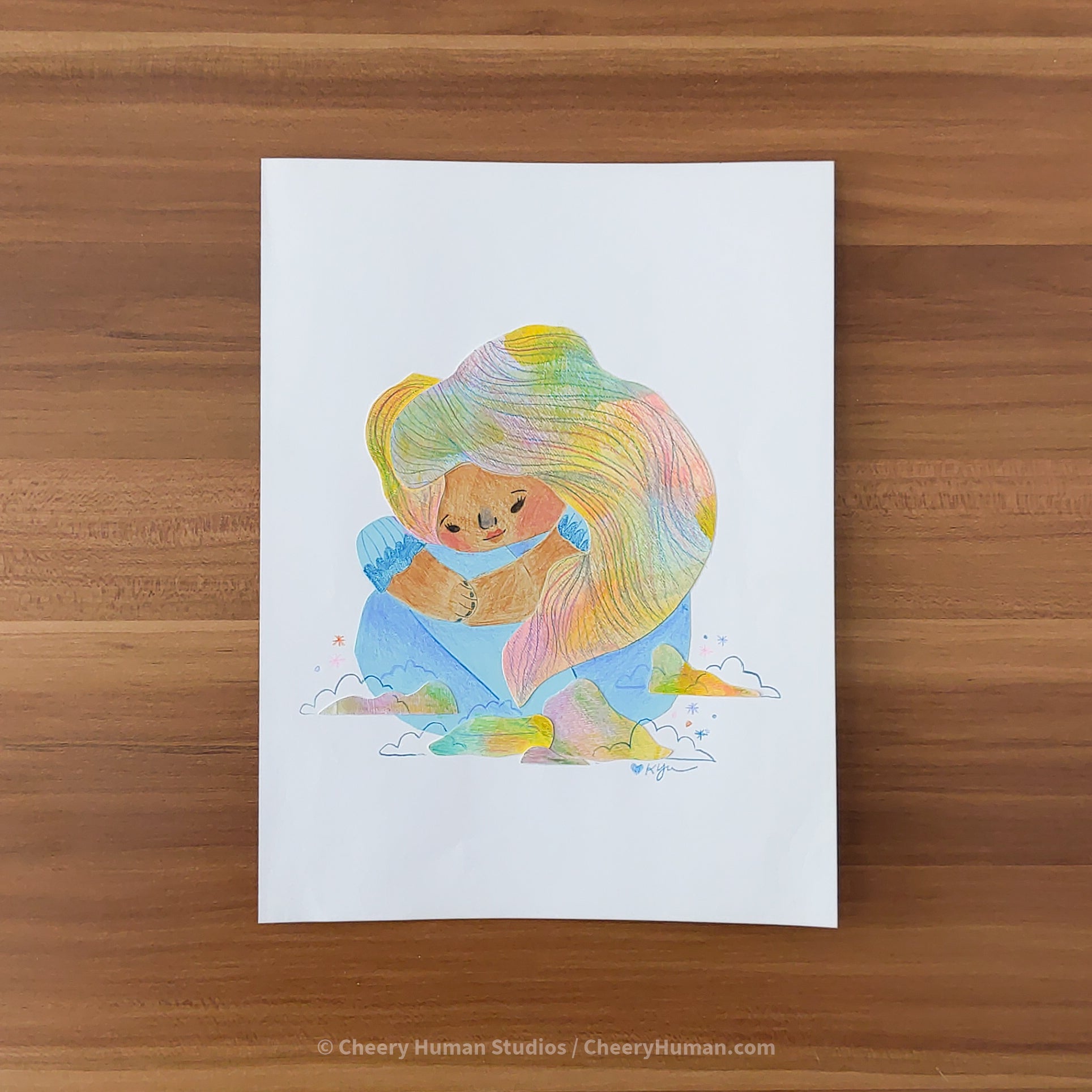 *PAPER ART ORIGINAL* Heartfelt Hugs in the Clouds - Original Paper Cut Artwork ✺ Watercolor - Acryla Gouache - Colored Pencil Art