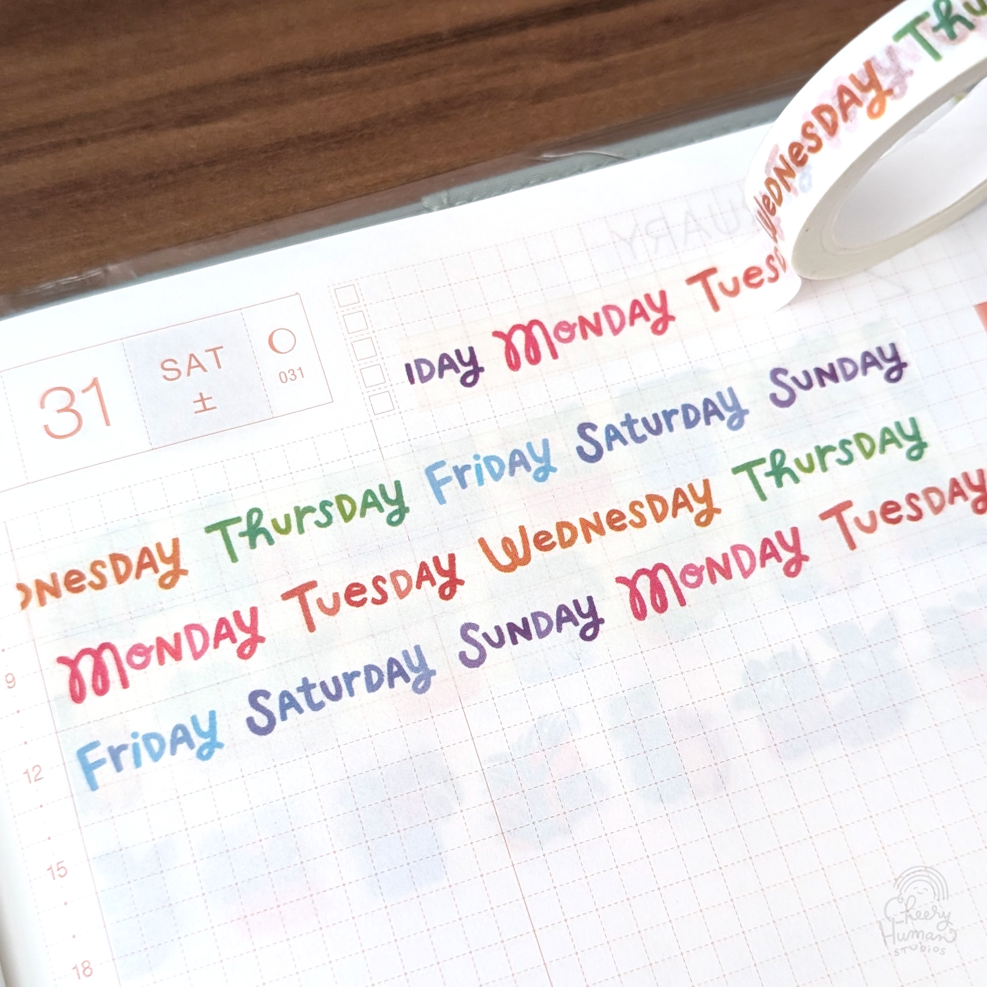 Days of the Week v2.0 is an updated version of my Days of the Week washi tape! It features updated hand-lettering and a slightly smaller washi roll to better fit a variety of journal sizes. This washi tape is perfect for bullet journals and daily logs!