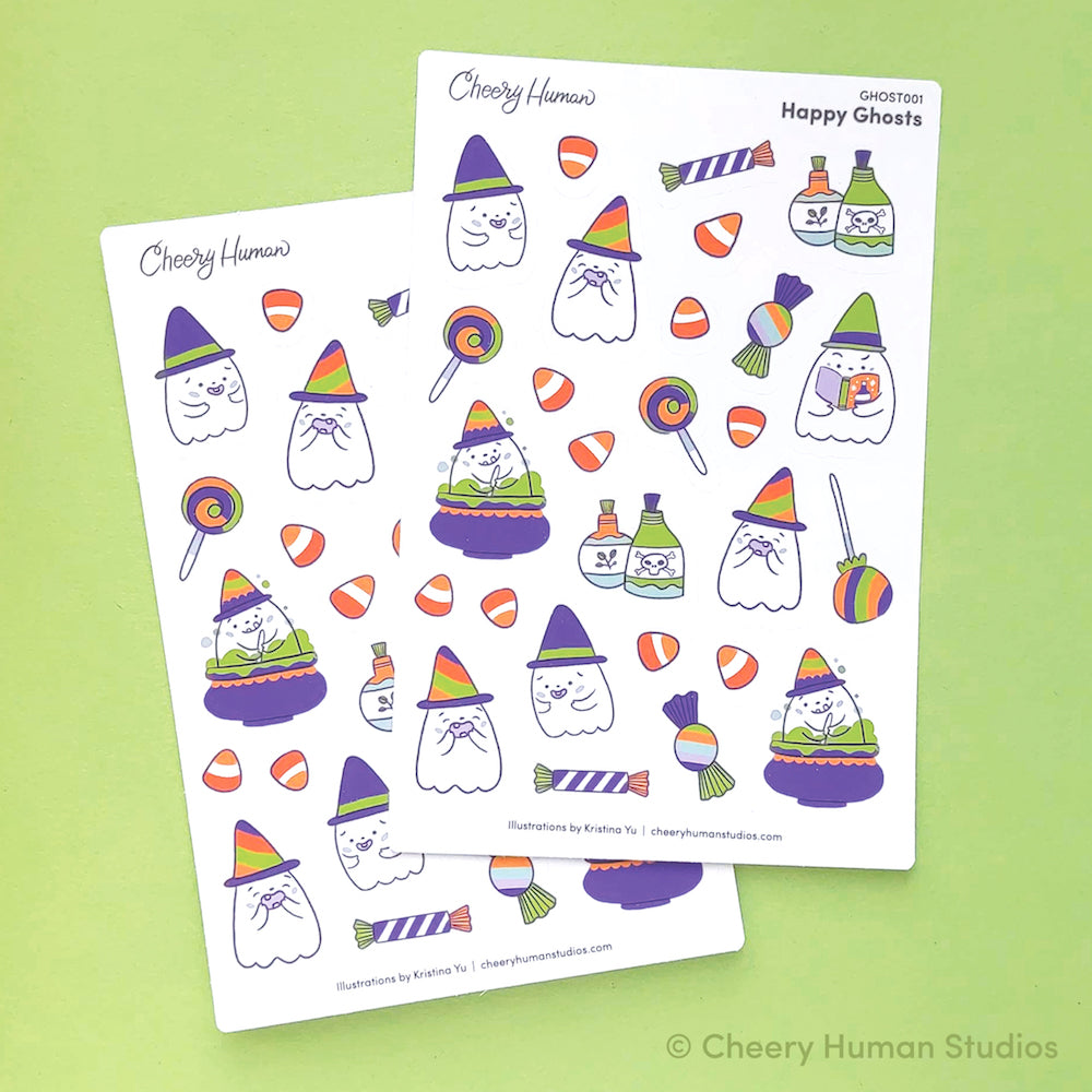 Happy Ghosts | Single Sticker Sheet or Pack of 5