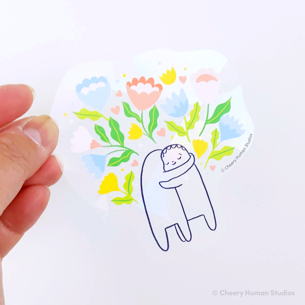 Bring beautiful rays of color and good vibes into your space with this heartwarming Healing Hugs rainbow suncatcher decal.
